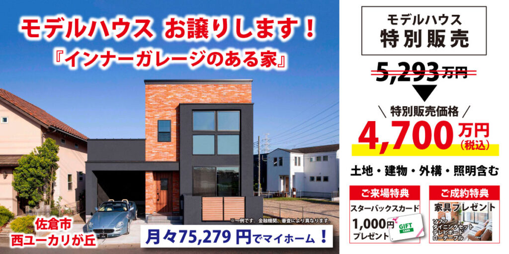 佐倉市西ユーカリが丘のモデルハウス『インナーガレージのある家』を販売します。人気のユーカリが丘でおしゃれなニューヨークスタイルのインナーガレージのある家をお得に手に入れてみませんか?